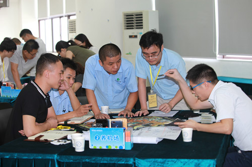 怀着学习的热情,我们尊龙凯时中国站科技各事业部的主管级职员和后备人才梯队职员在7月28日早上9点齐聚总部培训室,加入公司为我们组织的《沙漠掘金—团队管理沙盘模拟》培训课 。